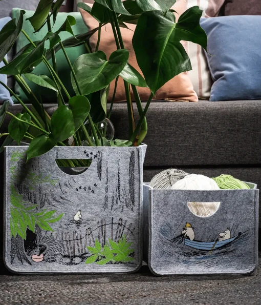 Muumi Originals -säilytyskori Luonnossa on kierrätysmuovista valmistettu kodin monipuolinen ja käytännöllinen säilytysratkaisu, jonka huopamainen materiaali kestää kovaakin käyttöä.